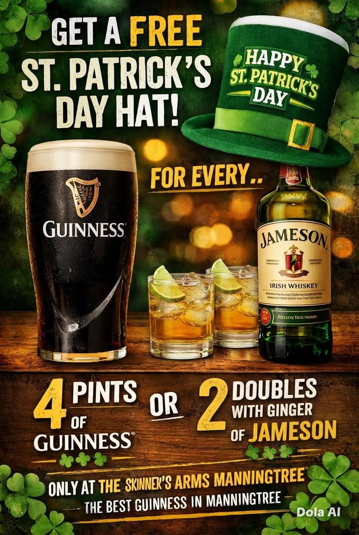 Get yourselves down to the Skinner’s Arms today and help celebrate St Patrick’s day!!