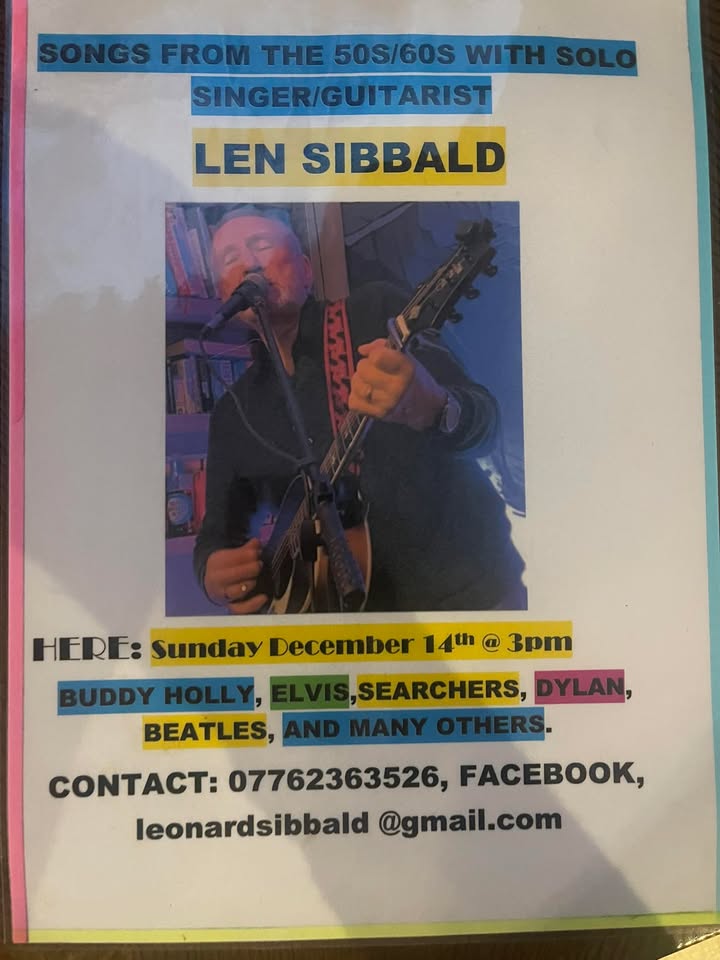 Come and join us for an afternoon of music with Len Sibbald on December 14th from 3pm!
